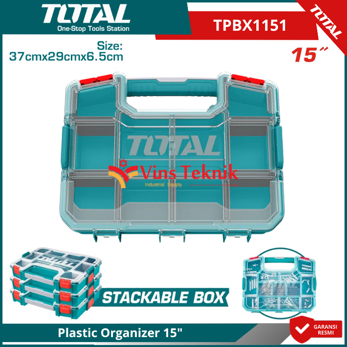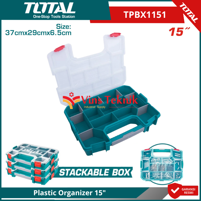TOTAL TPBX1151 adalah sebuah wadah penyimpanan atau plastic organizer berukuran 15 inci yang dirancang untuk merapikan perkakas kecil, komponen elektronik, atau aksesori bengkel