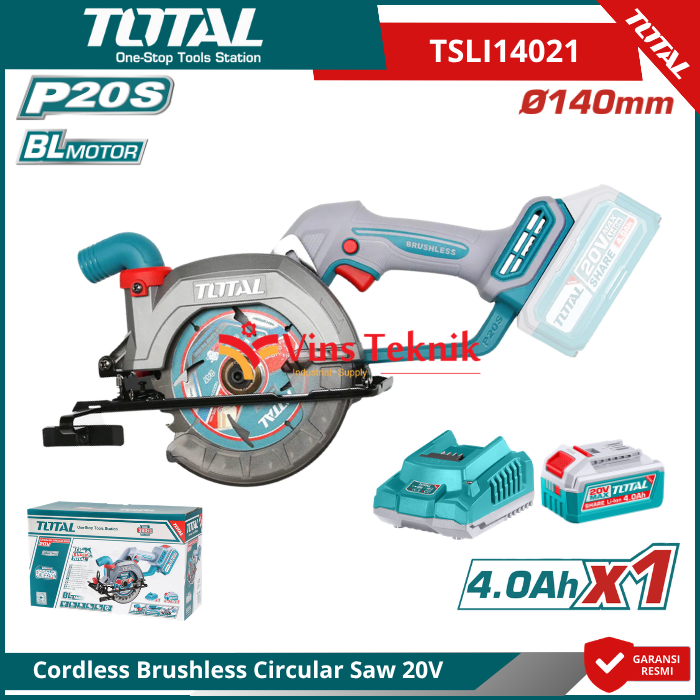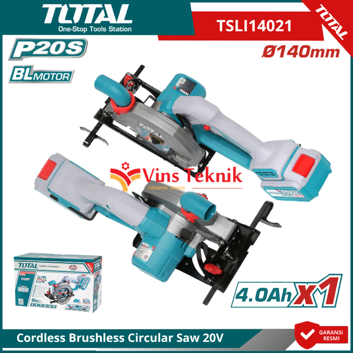 TOTAL TSLI14021 Mesin Gergaji Kayu Cordless Brushless Compact Circular Saw 5.5" 140MM 20V TSLI 14021
