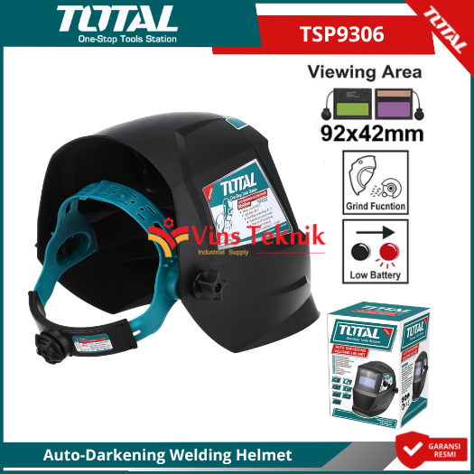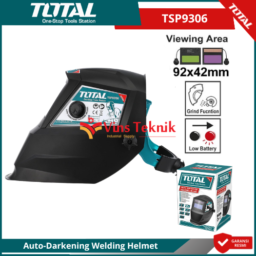 Total TSP9306 adalah helm las otomatis (Auto-Darkening Welding Helmet) yang dirancang untuk melindungi mata pengguna dengan menggelapkan kaca secara otomatis saat busur las menyala.