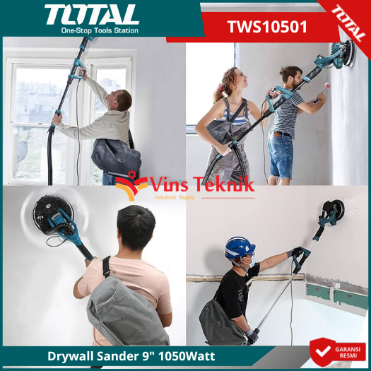 TOTAL TWS10501 (Drywall Sander) adalah desain teleskopik yang memungkinkan jangkauan hingga ke langit-langit (2,5 – 3 meter) serta sistem penerangan LED terintegrasi di sekeliling cakram amplas untuk membantu melihat permukaan yang tidak rata