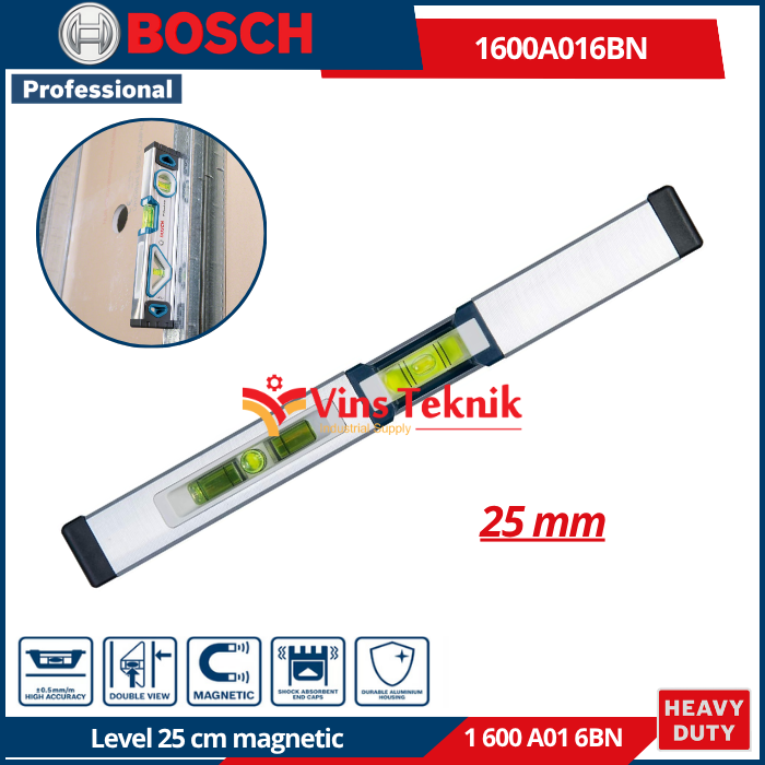 - Akurasi Presisi : Memiliki tingkat akurasi pengukuran sebesar... Read More Bosch 1 600 A01 6BN adalah Waterpas Magnetis 25 cm Professional. Alat pengukur ini dirancang dengan bodi aluminium yang kokoh untuk memberikan stabilitas dan akurasi tinggi di lokasi kerja.