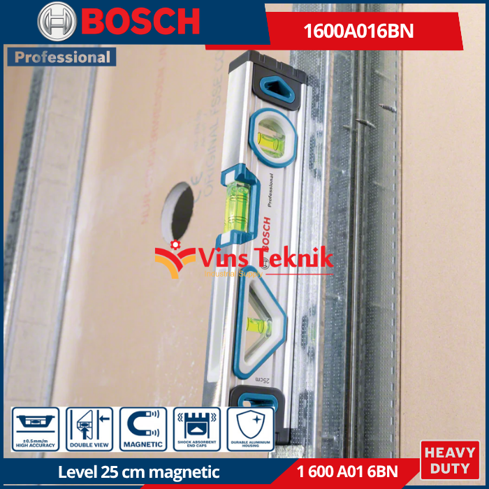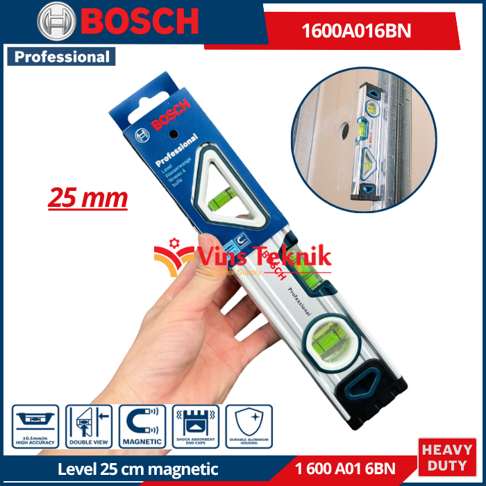 Bosch 1 600 A01 6BN adalah Waterpas Magnetis 25 cm Professional. Alat pengukur ini dirancang dengan bodi aluminium yang kokoh untuk memberikan stabilitas dan akurasi tinggi di lokasi kerja.