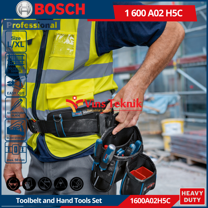Bosch 1600A02H5C adalah set sabuk peralatan dan perkakas tangan profesional yang dirancang untuk menjaga alat-alat penting tetap mudah dijangkau untuk fleksibilitas dan mobilitas maksimum. Set ini menggunakan sistem Bosch ProClick untuk kemudahan penggunaan.