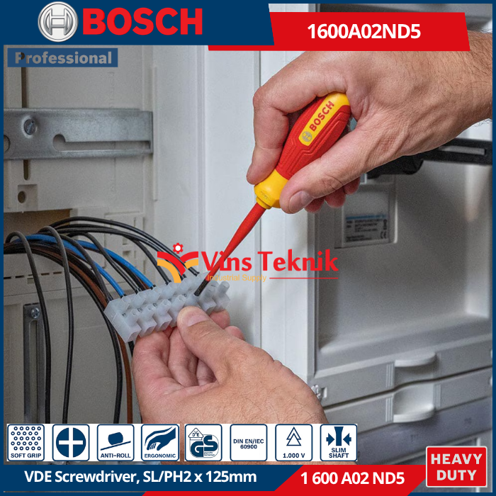 BOSCH 1 600 A02 ND5 adalah produk Bosch Professional VDE Screwdriver SL/PH 2 x 125mm.