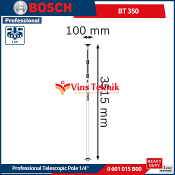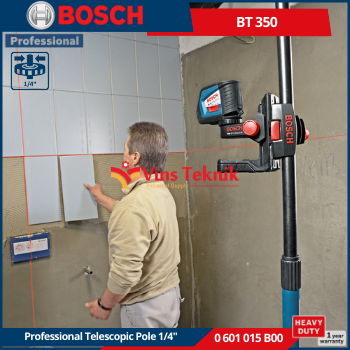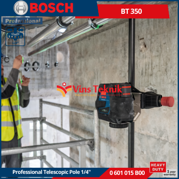 Ulir Tripod: Memiliki ulir tripod standar... Read More BOSCH BT 350 adalah tiang teleskopik profesional yang dirancang untuk memasang level laser garis dan titik, menawarkan ketinggian kerja yang serbaguna. Alat ini dikenal karena konstruksinya yang kuat dan kemudahan pengoperasiannya.