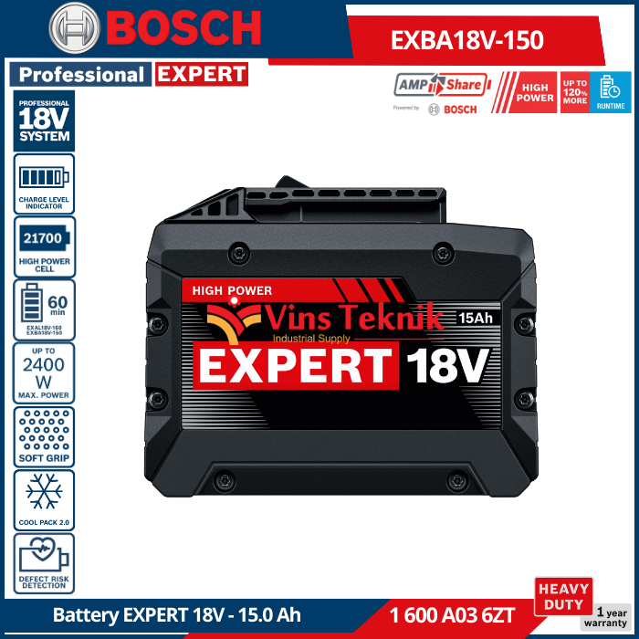 BOSCH EXBA18V-150 Baterai Lithium-Ion Battery Cordless EXPERT 18V 15.0Ah EXBA 18V-150