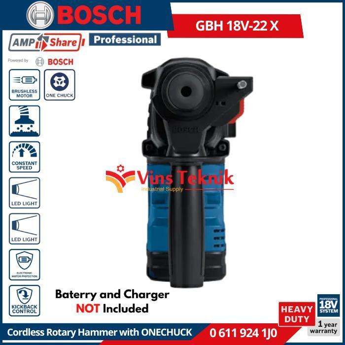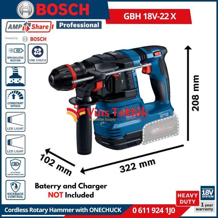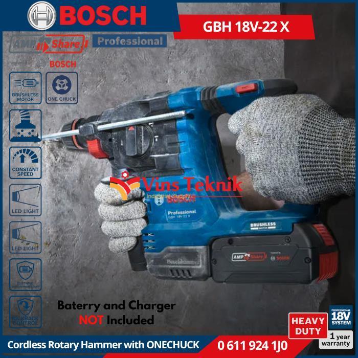BOSCH GBH 18V-22 X Mesin Bor Tembok Beton Baterai Cordless Brushless Rotary Hammer 22mm 18V SDS Plus GBH18V-22X