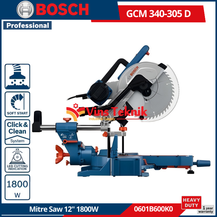 - Gergaji miter profesional GCM 340-305D berkabel ini memiliki motor yang bertenaga, penyangga benda kerja yang dapat dilepas, sistem manajemen debu yang efektif, lampu LED terintegrasi dengan indikasi garis potong, dan pegangan horizontal untuk penggunaan tangan kiri dan kanan. Gergaji ini juga kompatibel dengan dudukan dan penyedot debu Bosch.... Read Less