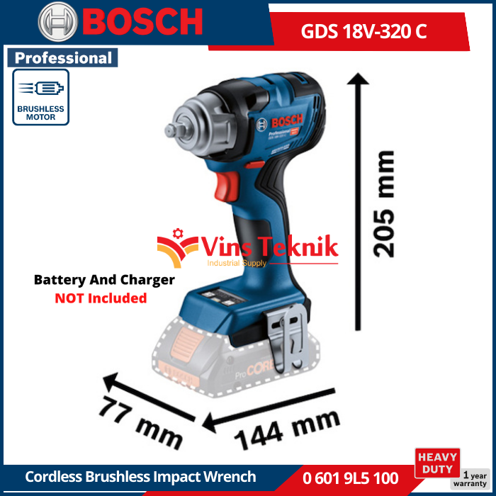 -... Read More Bosch GDS 18V-320 C Professional adalah kunci pas benturan nirkabel (cordless impact wrench) yang ringkas dan bertenaga, dirancang untuk tugas-tugas berat dalam perakitan industri, pemeliharaan kendaraan, dan pengerjaan logam.