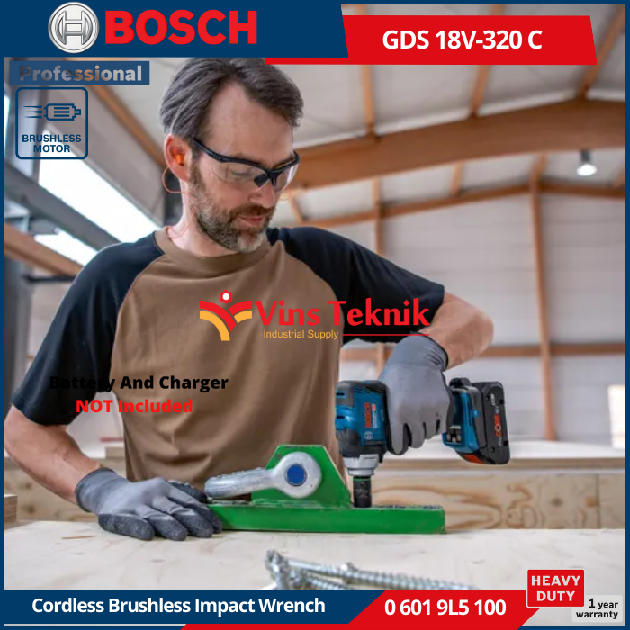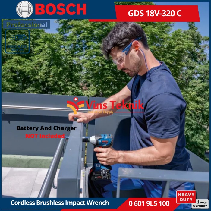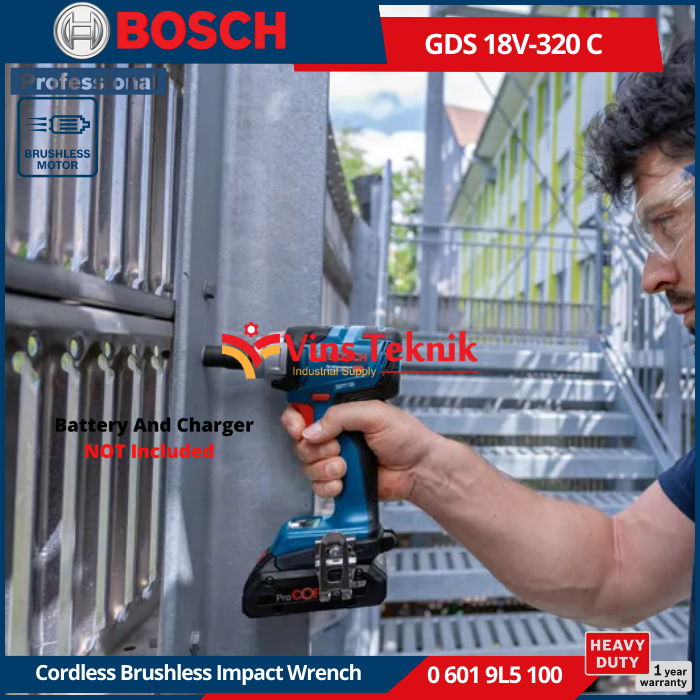 Bosch GDS 18V-320 C Professional adalah kunci pas benturan nirkabel (cordless impact wrench) yang ringkas dan bertenaga, dirancang untuk tugas-tugas berat dalam perakitan industri, pemeliharaan kendaraan, dan pengerjaan logam.