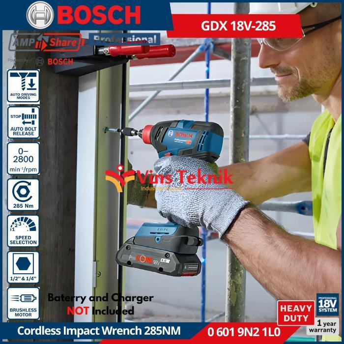 BOSCH GDX 18V-285 Mesin Pembuka Baut Cordless Brushless Impact Wrench & Impact Driver 18V GDX18V-285
