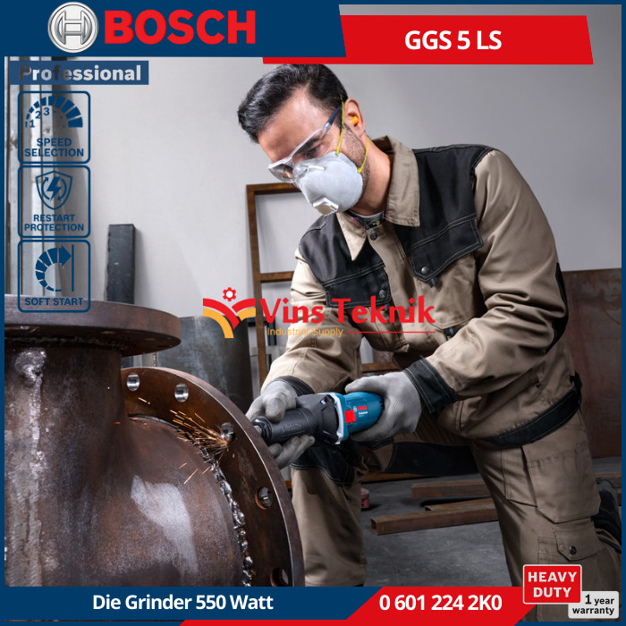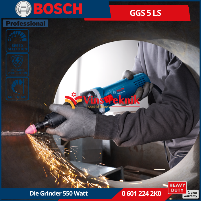 - Desain Ergonomis : Memiliki pegangan ergonomis, bodi ramping, dan spindel depan untuk penanganan dan kenyamanan... Read More Bosch GGS 5 LS Professional adalah gerinda lurus (straight grinder) bertenaga listrik yang dirancang untuk pekerjaan presisi pada material logam. Alat ini dikenal karena memberikan kontrol yang lebih baik berkat sistem pemilihan kecepatan dan fitur keamanan yang ditingkatkan