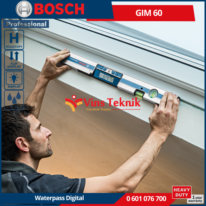 - Fungsi "Hold/Copy": Fitur ini memungkinkan pengguna untuk mengunci... Read More BOSCH GIM 60 adalah inklinometer digital profesional yang berfungsi sebagai pengukur kemiringan dan waterpass digital dengan panjang 60 cm. Alat ini dirancang untuk pengukuran kemiringan yang tepat dalam berbagai satuan.