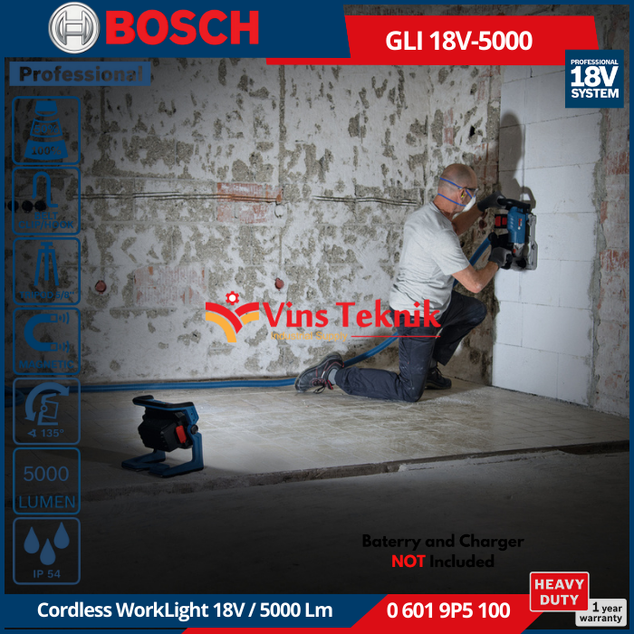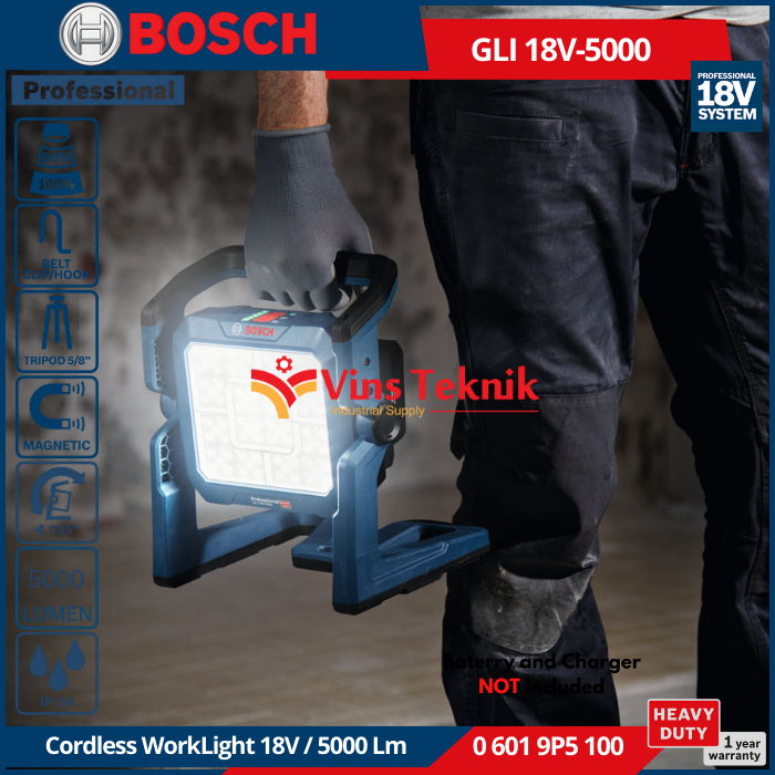 BOSCH GLI 18V-5000 Lampu Kerja Baterai 5000 Lumen Cordless Jobsite Light WorkLight 18V GLI18V-5000