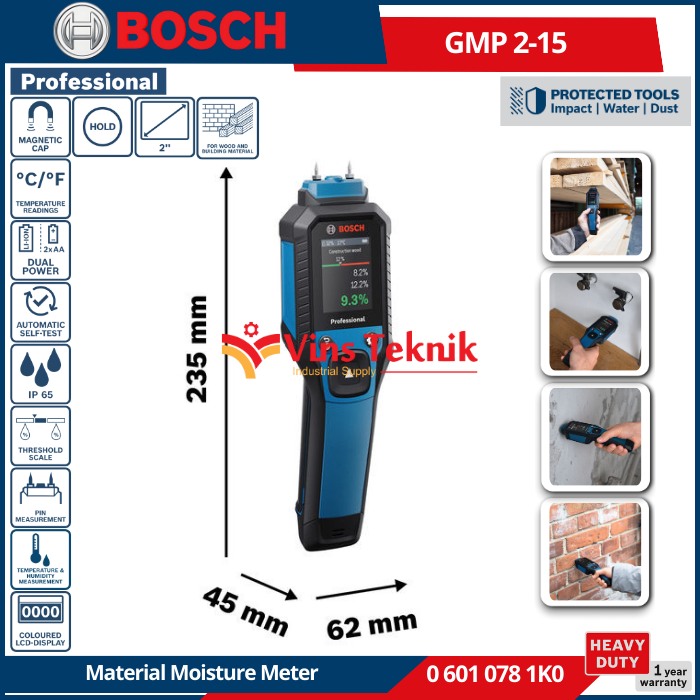 BOSCH GMP 2-15 Alat Pengukur Kelembapan Material Pin Material Moisture Meter GMP2-15