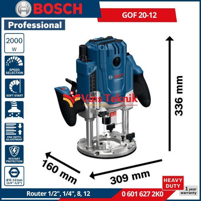BOSCH GOF 20-12 Mesin Profil Kayu Besar Wood Router 12MM 2000Watt GOF20-12