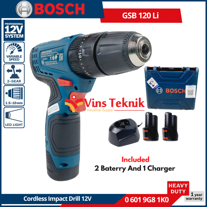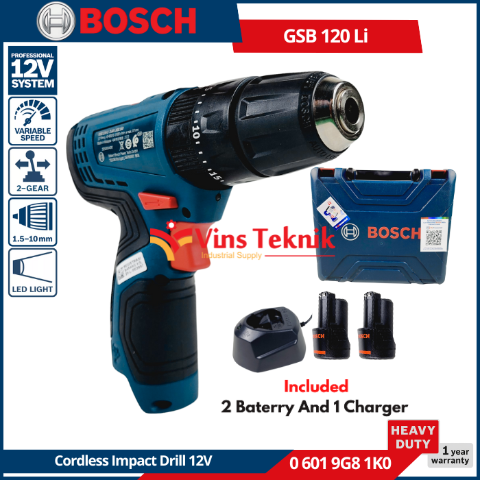 BOSCH GSB 120-Li Mesin Bor Baterai Cordless Impact Drill 10mm 12V GSB120Li 2.0AH 06019G81K0