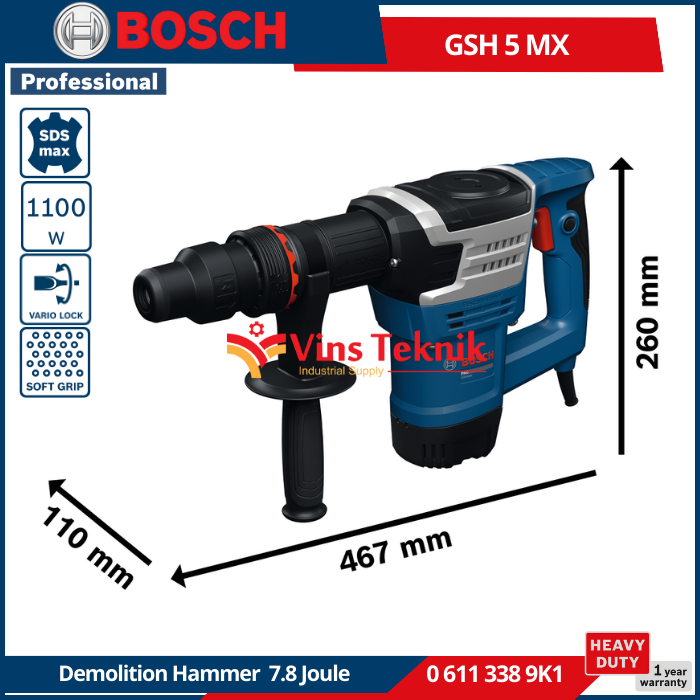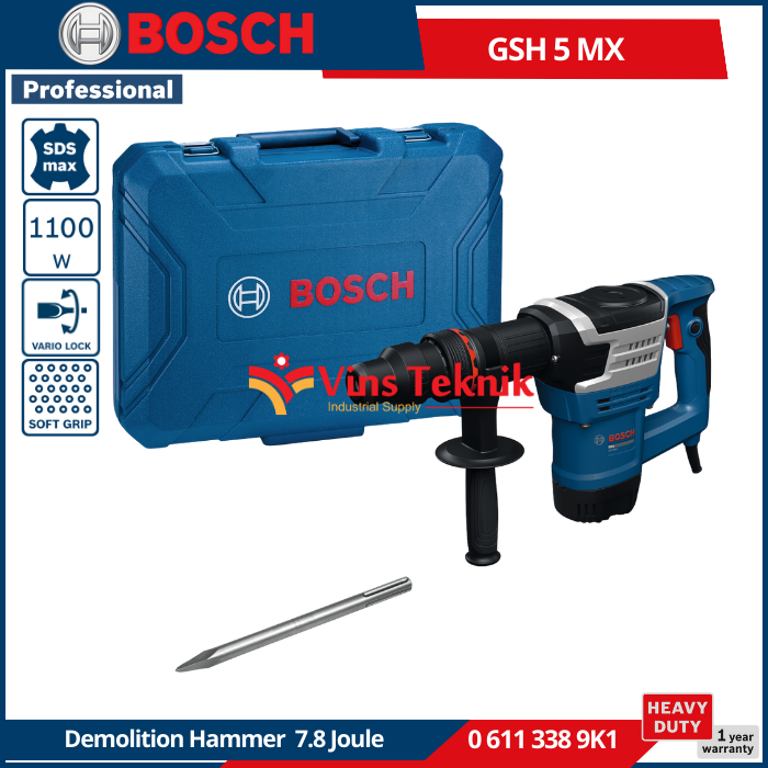 BOSCH GSH 5 MX Mesin Bobok Beton Jack Hammer Demolition Hammer 7.8Joule 1100Watt GSH5MX