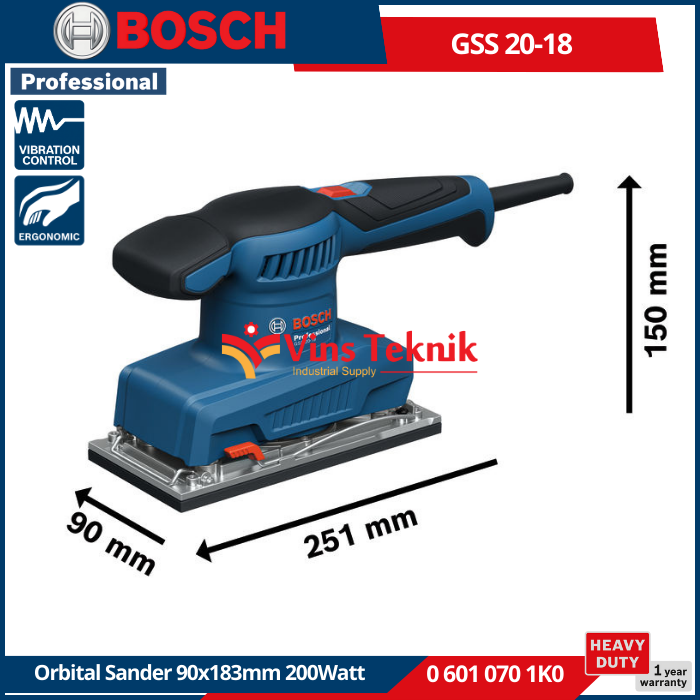 BOSCH GSS 20-18 Mesin Amplas Kotak Orbital Sander 90x183mm 200Watt GSS20-18 06010701K0
