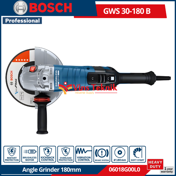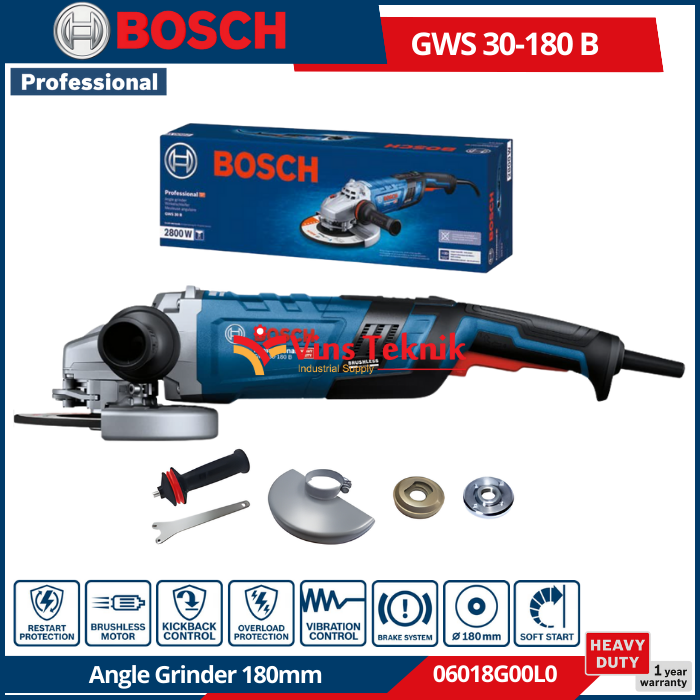 - Fitur tambahan dari GWS 30-180 B Professional meliputi indikator status alat LED, Perlindungan Beban Berlebih, Perlindungan Restart, dan Soft Start.... Read Less