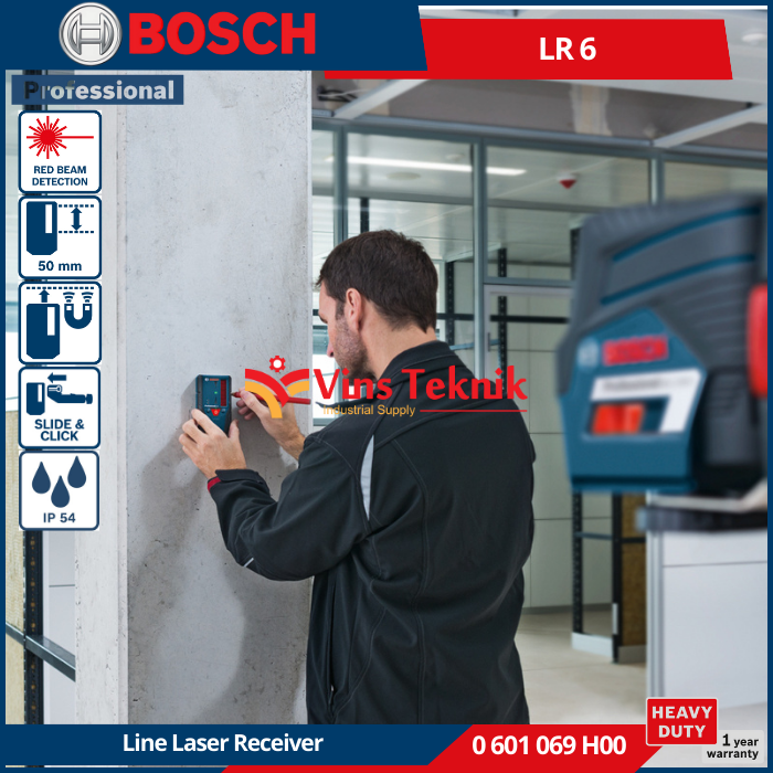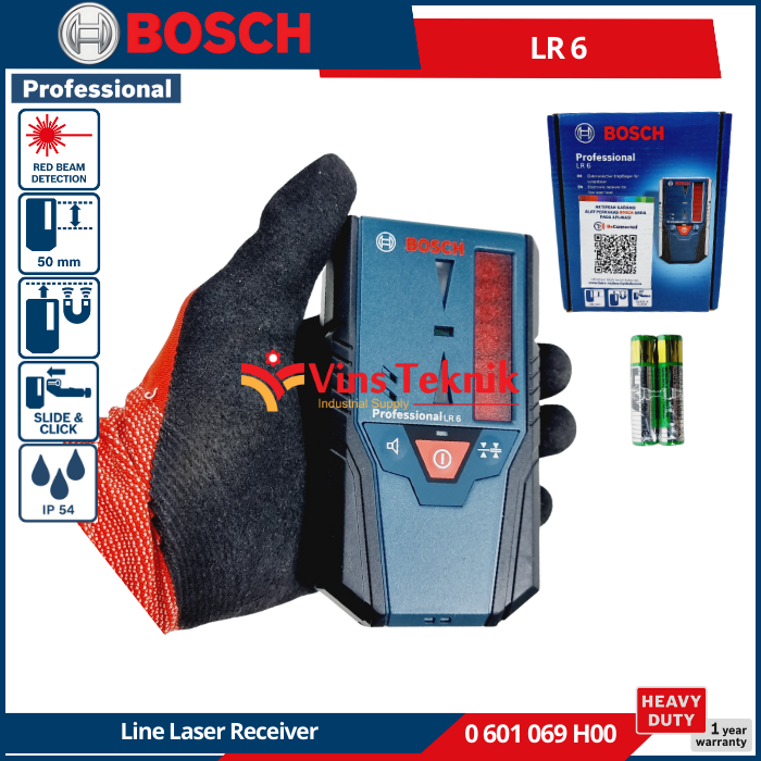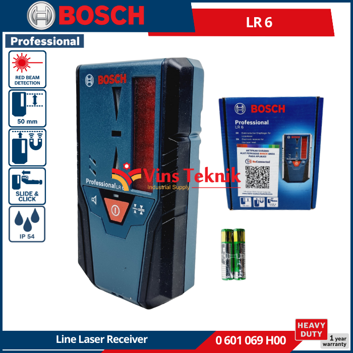 - Jarak Kerja : 0... Read More Bosch LR6 Laser Receiver merupakan perangkat untuk mendeteksi laser ketika sinar merah sudah diluar jangkauan penglihatan mata pada pengukuran dengan menggunakan laser level. Dengan 2 LCD display yang berposisi depan dan belakang, anda dapat membaca posisi laser dari sisi depan maupun sisi belakang, praktis digunakan untuk levelling di dalam maupun luar ruangan.