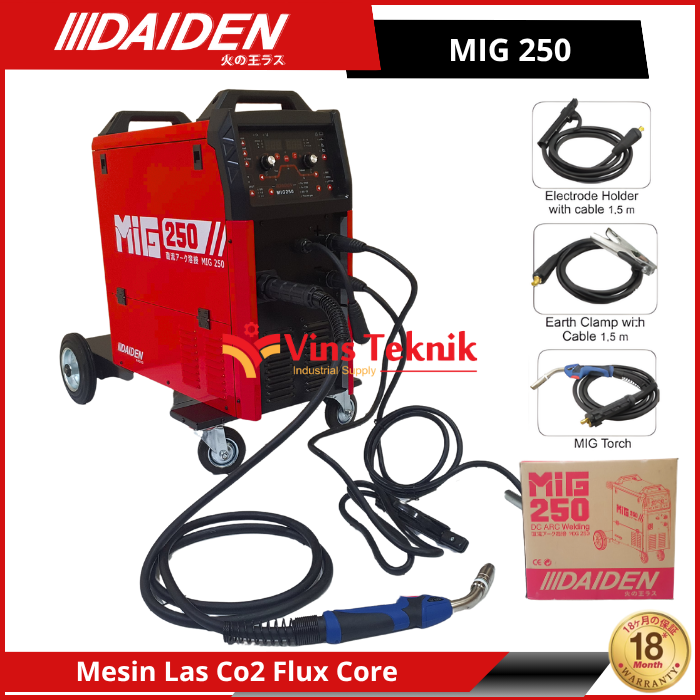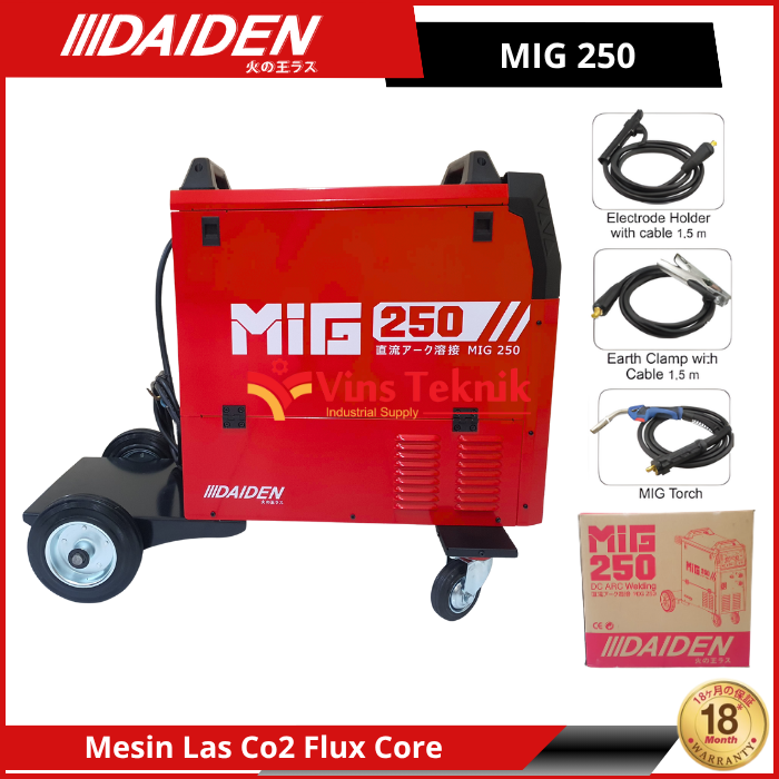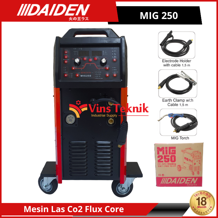 DAIDEN MIG 250 Mesin Las MMA MIG TIG Travo Las Inverter Trafo Las Co2 Flux Core Tanpa Gas 250A MIG250