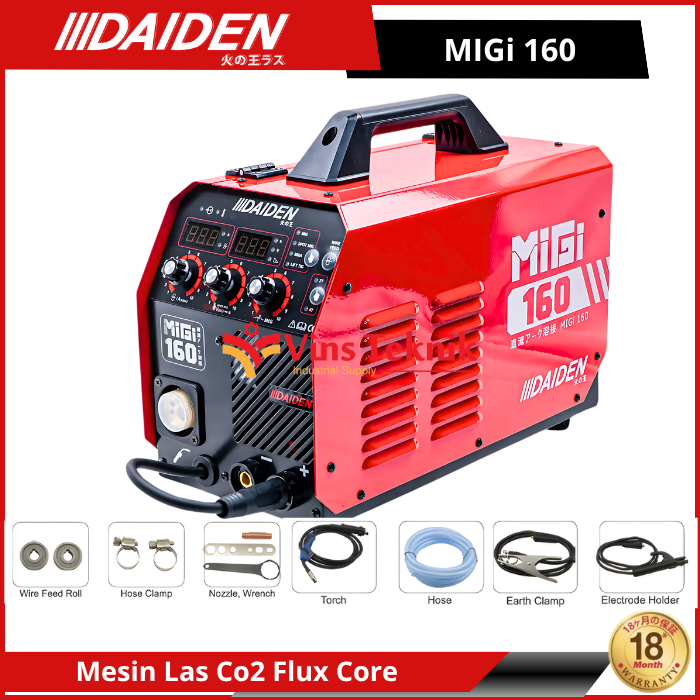 DAIDEN MIGi 160 Mesin Las Argon Stanless Travo Las Inverter Trafo Las Co2 Flux Core Tanpa Gas 160A MIGi160
