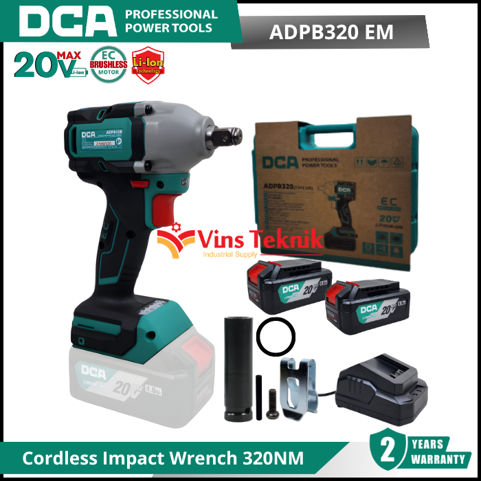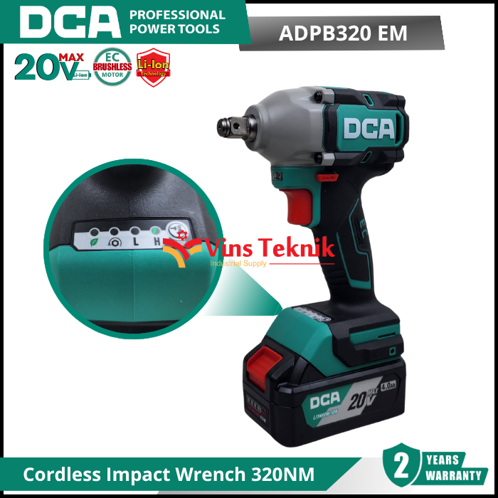 DCA ADPB320 EM Cordless Brushless Impact Wrench 1/2" 320NM Mesin Buka Baut Baterai 20V ADPB320EM