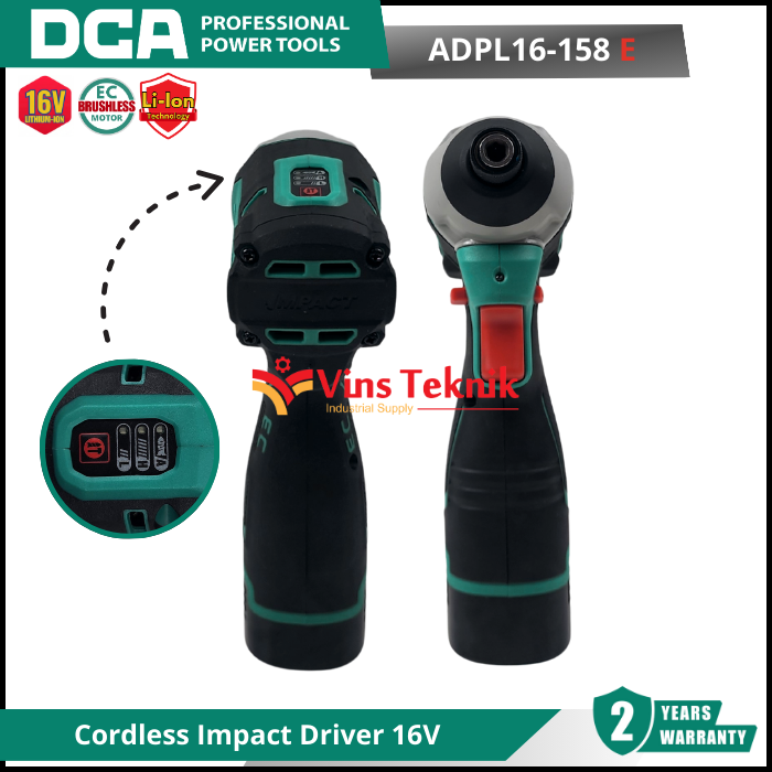 DCA ADPL16‐158E Mesin Bor Obeng Baterai Cordless Brushless Impact Driver 16V ADPL16‐158 E