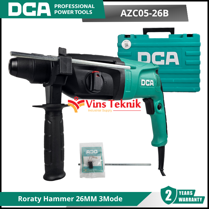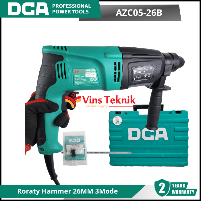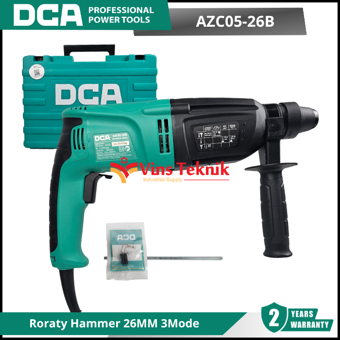 DCA AZC05-26B adalah mesin bor rotary hammer 3 fungsi yang dirancang untuk pekerjaan pengeboran beton, pembobokan ringan, dan pengeboran kayu atau besi. Model ini populer karena keseimbangan antara daya tahan dan harga yang terjangkau untuk kelas profesional maupun DIY