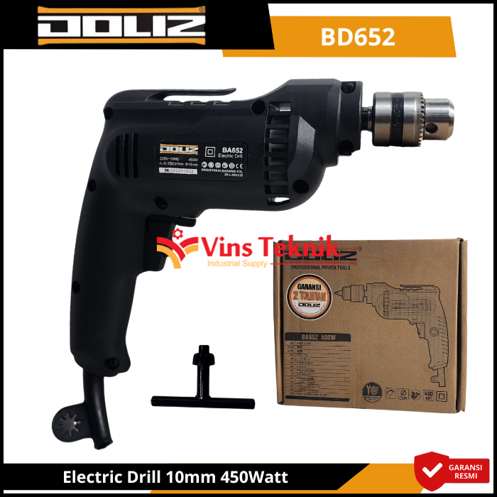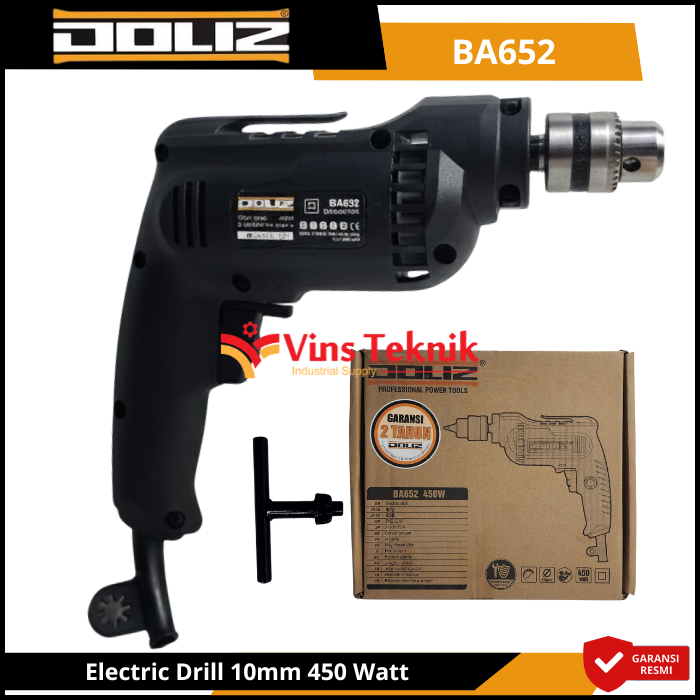 DOLIZ BA652 Mesin Bor Listrik Besi Kayu Electric Drill 10mm 450 Watt BA 652