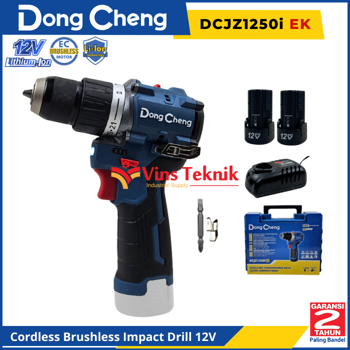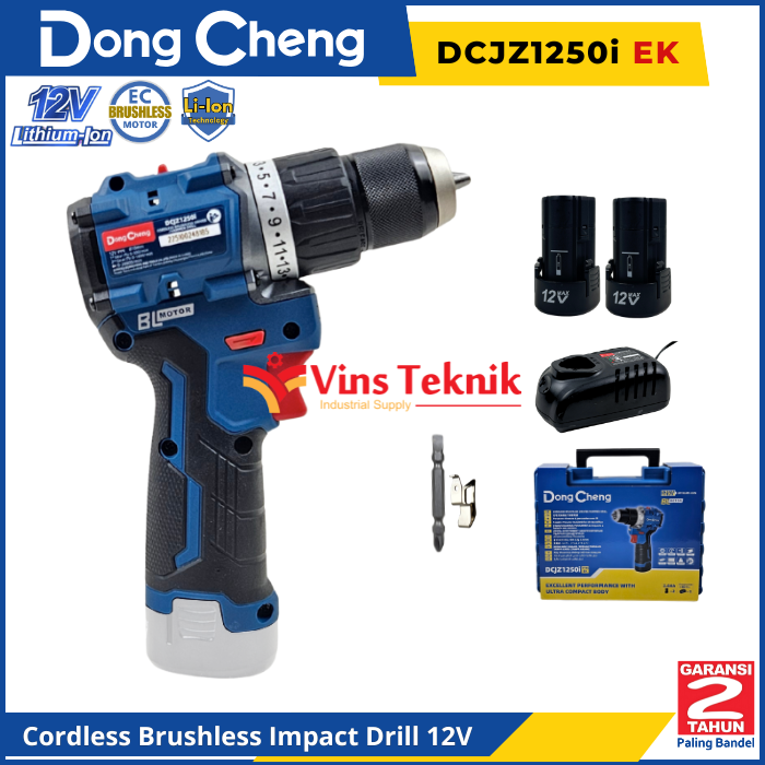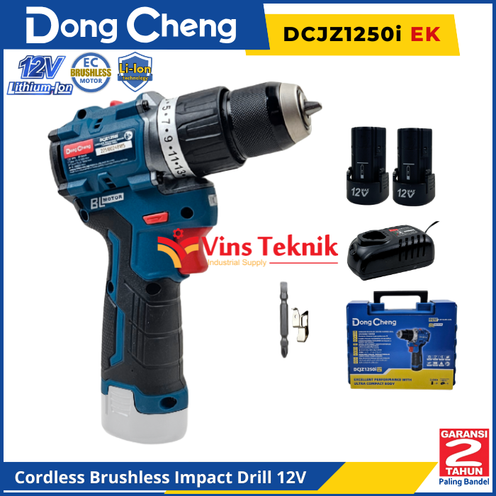 DONGCHENG DCJZ1250i EK Mesin Bor Baterai Cordless Brushless Impact Drill 12V 10MM DCJZ1250iEK
