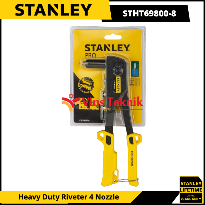 -... Read More Stanley STHT69800-8 Tang rivet heavy duty dengan fitur handle dengan pegas atau per untuk mengeluarkan sisa rivet secara otomatis, desain hidung yg slim agar mudah digunakan pada area yg sulit dijangkau, handle yang panjang membuat alat ini mudah untuk ditekan, dan desain bumper yang baru meresap daya potong pada setiap pukulan.