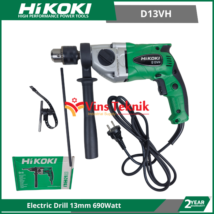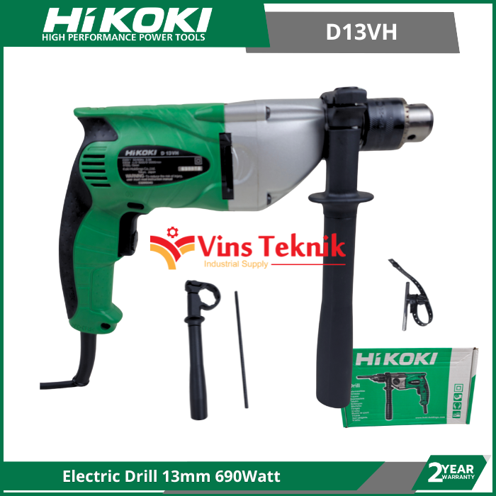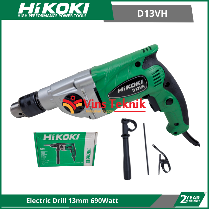 Hikoki DV 13VH merupakan mesin bor listrik yang memiliki bentuk sederhana, dengan daya input 690 watt dan dan kecepatan putaran bor 3000 rpm menjadikan DV 13VH memiliki kemampuan yang baik dalam hal mengebor.
