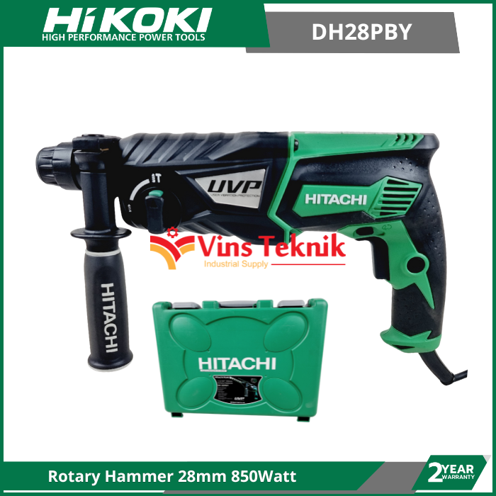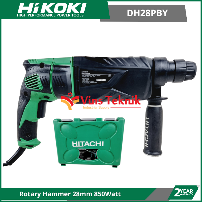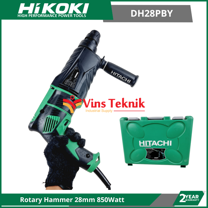 HIKOKI DH28PBY Mesin Bor Beton Rotary Hammer 2Mode 28mm 850Watt SDS Plus DH 28 PBY