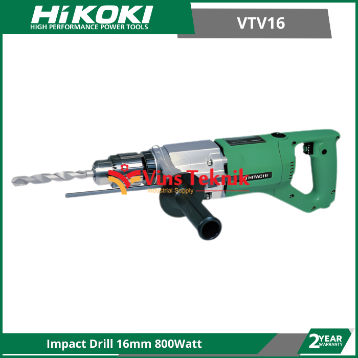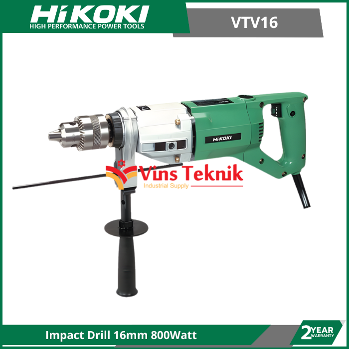 Hikoki VTV 16 merupakan mesin bor listrik yang memiliki bentuk sederhana, dengan daya input 800 watt dan dan kecepatan putaran bor 1400 rpm menjadikan VTV 16 memiliki kemampuan yang baik dalam hal mengebor. Dengan fitur impact mempermudah dan mempercepat dalam pengeboran beton serta fitur variable speed kecepatan putaran bor dapat diatur sesuai kebutuhan.