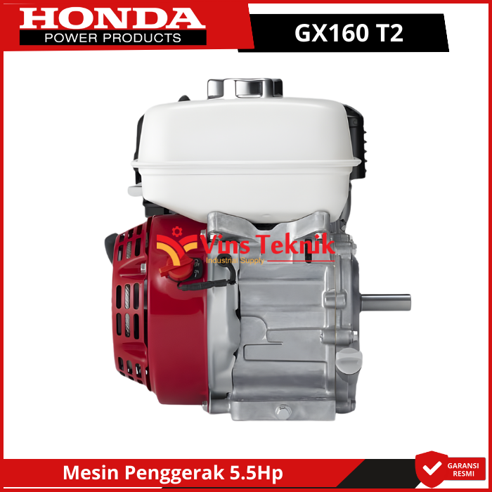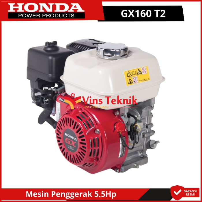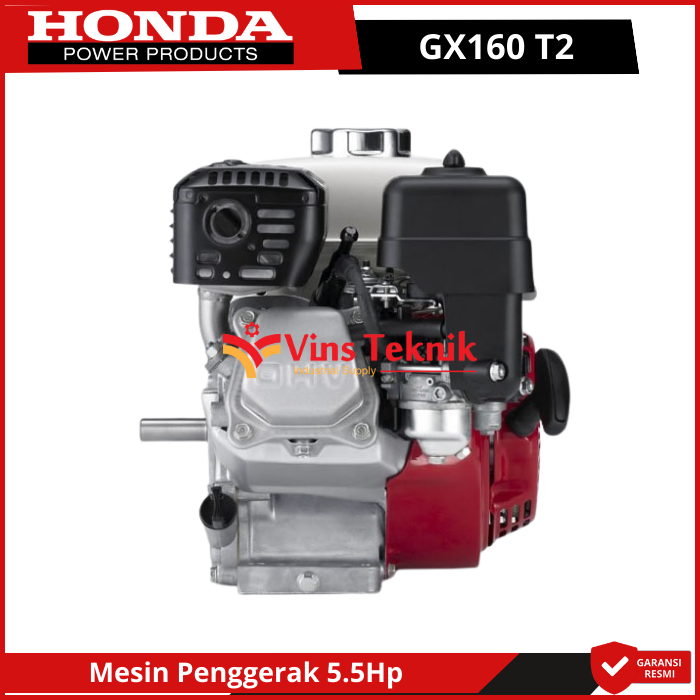 Mesin Honda GX160T2 adalah mesin penggerak serbaguna kelas komersial yang terkenal karena keandalannya dan kinerja superior dengan emisi dan getaran yang rendah. Mesin ini memiliki daya maksimum 5,5 HP dan banyak digunakan dalam berbagai aplikasi industri dan pertanian