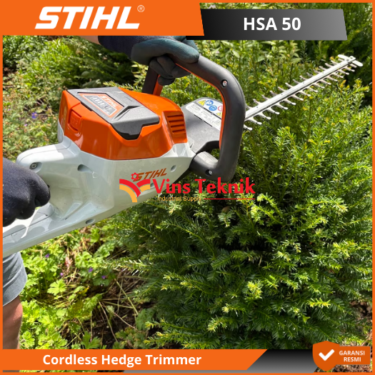 STIHL HSA 50 adalah pemangkas pagar nirkabel ( cordless hedge trimmer) yang ringan dan efisien, dirancang untuk perawatan semak dan pagar ukuran sedang di taman rumah