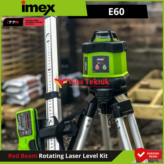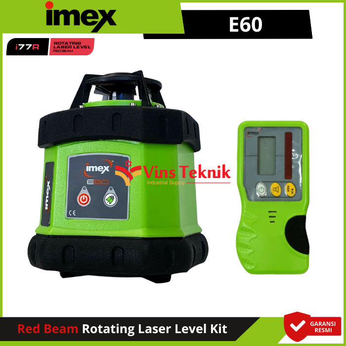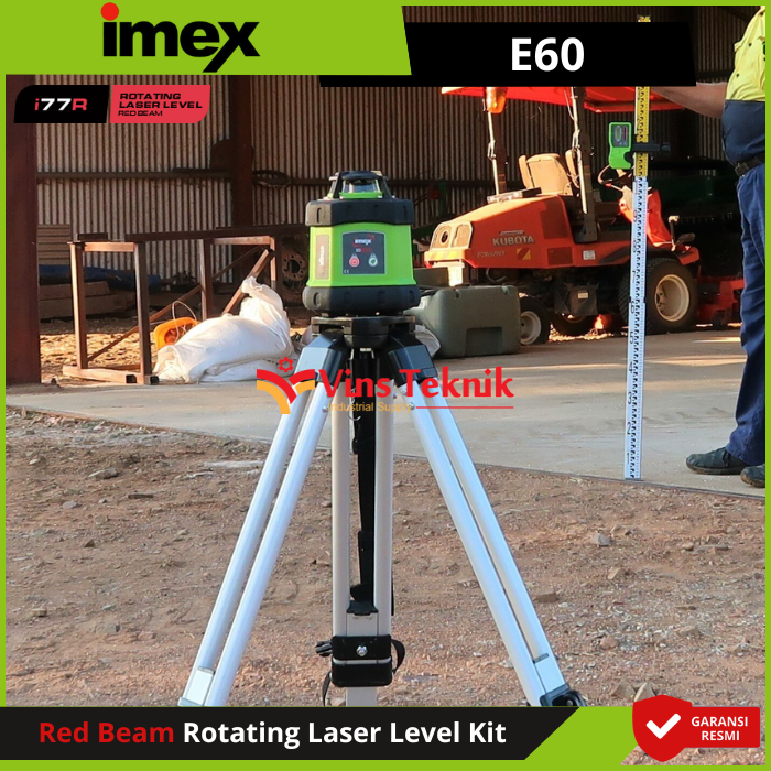 Perlengkapan : Laser, Tripod, Tongkat, Detektor... Read More Kit iMEX E60 hadir dengan semua yang Anda butuhkan dalam satu wadah, penuh fitur, dan mudah dioperasikan, baik Anda profesional maupun penggemar DIY. Dilengkapi jangkauan diameter 400m yang luas, pelindung selubung karet, dan penutup mercusuar tugas berat untuk ketahanan guncangan dan cuaca yang superior, E60 adalah pilihan terbaik untuk perataan laser sehari-hari.