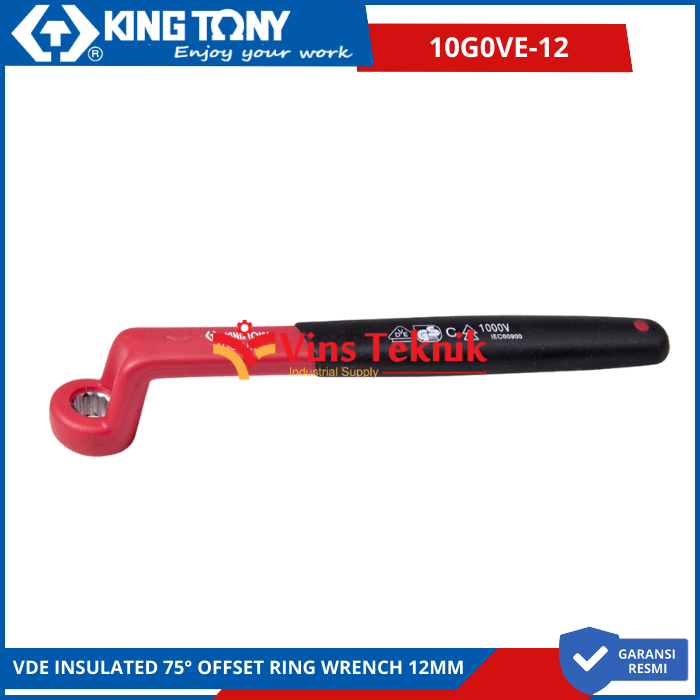 KING TONY 10G0VE-12 Kunci Pas VDE insulated 75° Offset Ring wrench 12mm