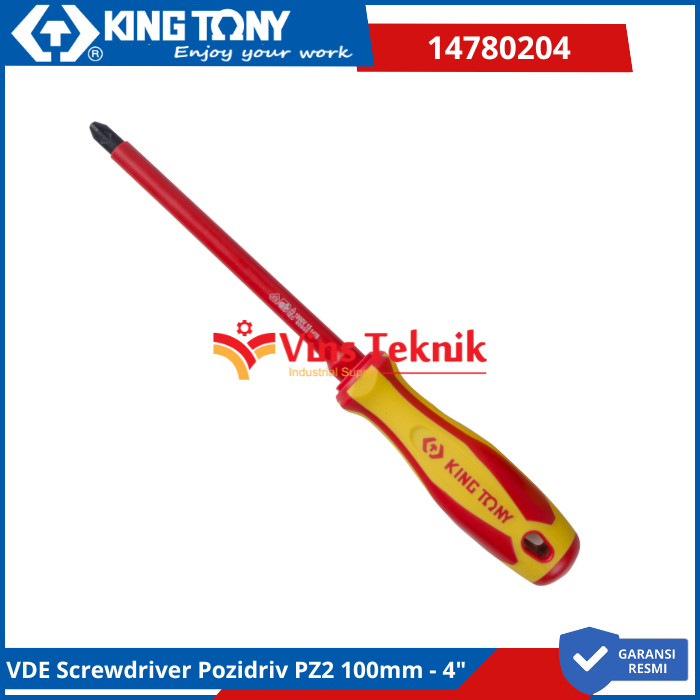 KING TONY 14780204 Obeng Listrik Pozidriv VDE Screwdriver Pozidriv PZ2 100mm - 4"