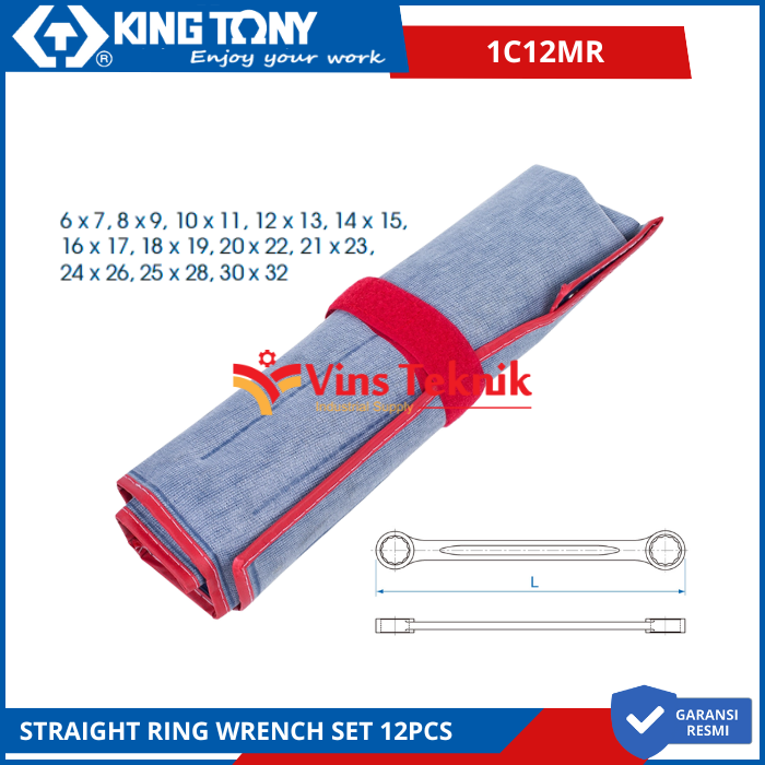 KING TONY 1C12MR Straight Ring Wrench & Set 12pcs