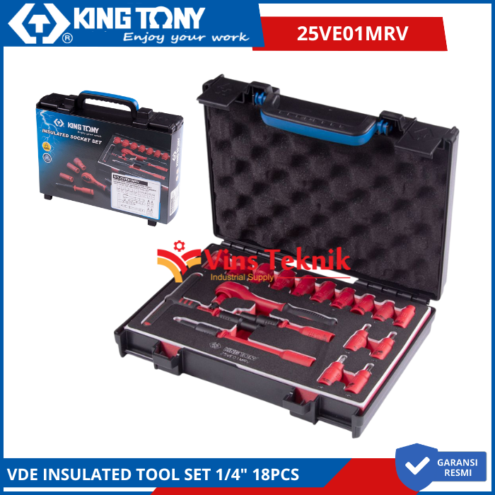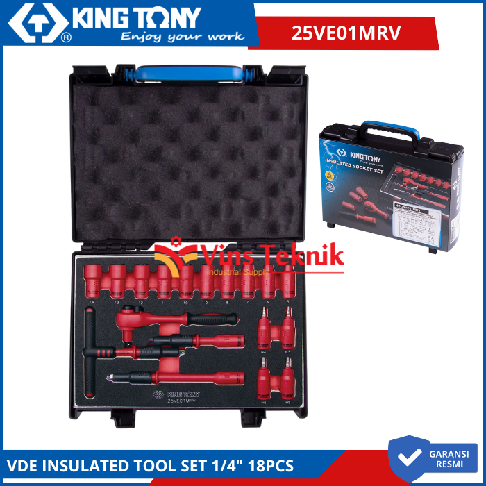KING TONY 25VE01MRV Kunci Socket VDE Insulated Tool Set 1/4" 18PCS