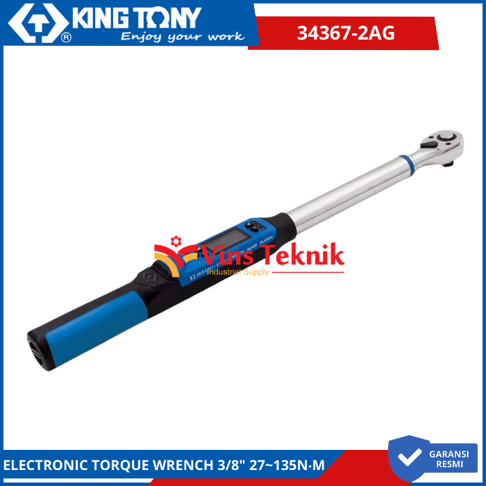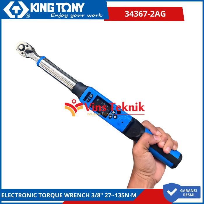 KING TONY 34367-2AG Kunci Momen Kunci Torsi Adjustable Electronic Torque Wrench Digital 3/8" 27~135N‧m