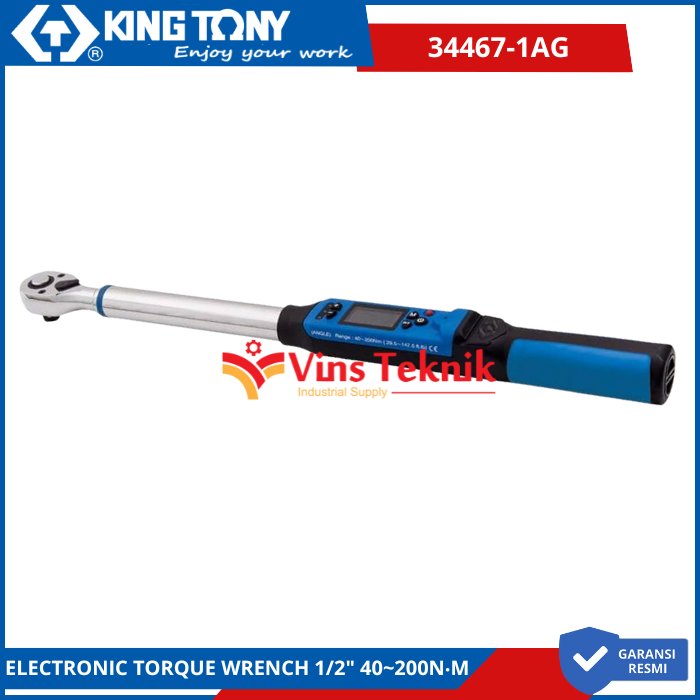 KING TONY 34467-1AG Kunci Momen Kunci Torsi Adjustable Electronic Torque Wrench Digital 1/2" 40~200N‧m