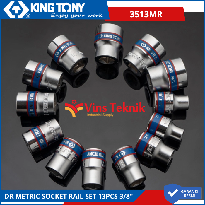 KING TONY 3513MR Kunci Socket DR Metric Socket Rail Set 13pcs 3/8"