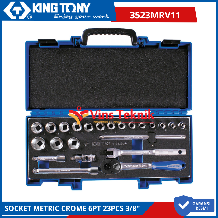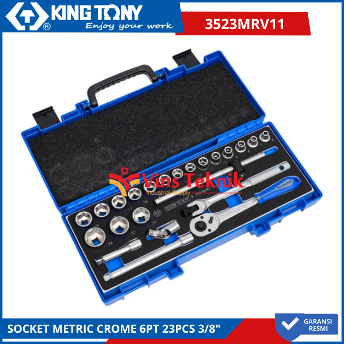 KING TONY 3523MRV11 Kunci Socket Metric Crome 6PT 23Pcs 3/8"