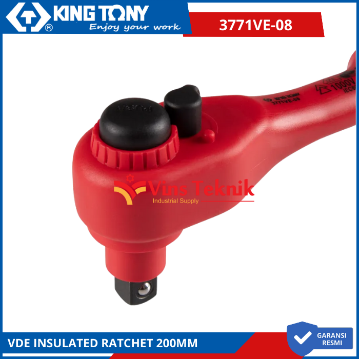 KING TONY 3771VE-08 Kunci Socket VDE Insulated Ratchet 200mm