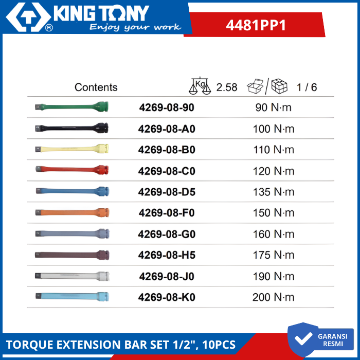 KING TONY 4481PP1 Adaptor Kunci Socket Torque Extension Bar Set 1/2" 10pcs