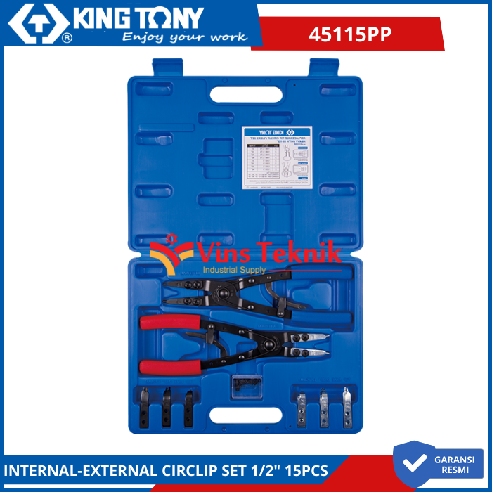 KING TONY 45115PP Tang Snap Ring Internal-External Circlip Set 1/2" 15pcs